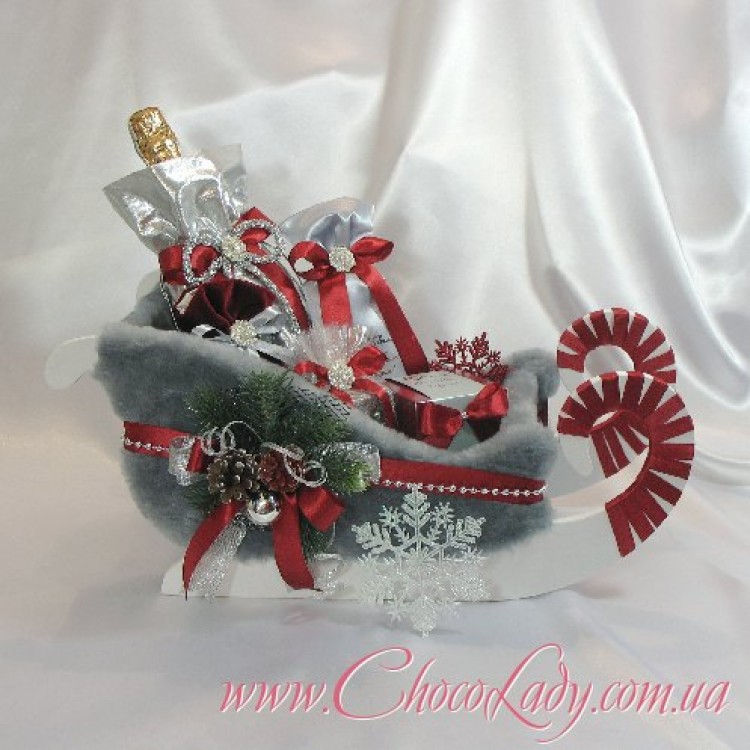 Новорічні санки з шоколадом – оригінальний та статусний сюрприз для вашого начальника або колег, який змусить усміхнутися навіть у найзавантаженіші дні.