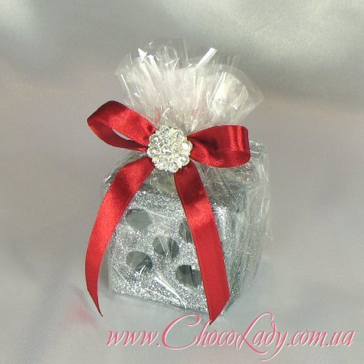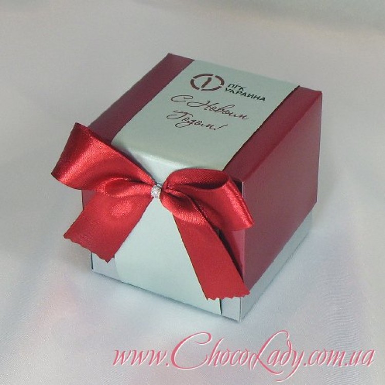 Коробка куб з цукерками "Заспиртована вишня у шоколаді". Вага 0,150.