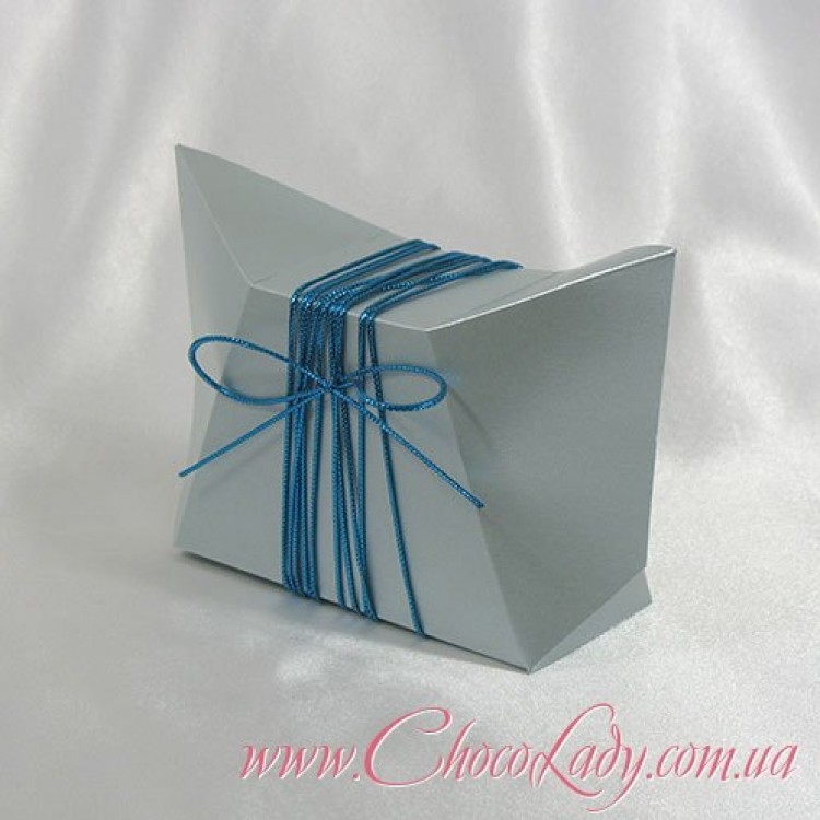 Упаковка виготовлена із срібного дизайнерського картону, прикрашена тонкою стрічкою.