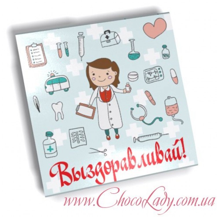 Шоколадний набір для тих, хто хоче побажати своєму близькому одужання! Склад: 4 плитки шоколаду Вага: 20гр Розмір: 9,5 * 9,5 см Смак: молочний