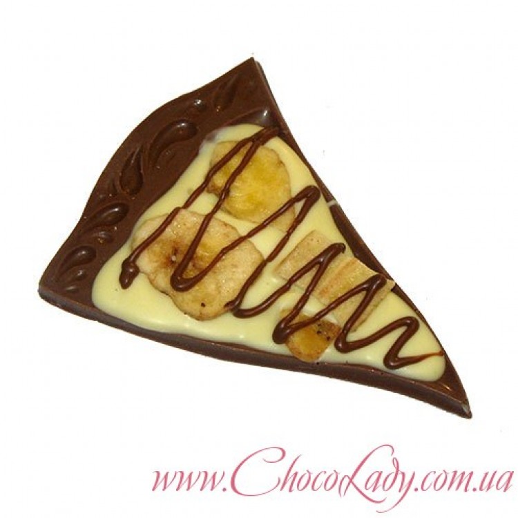 Шоколадна піца з банановими чіпсами Молочний та білий шоколад Коржик Шоколадної піци - середній Середня шоколадна піца складається з 8 коржиків Вага: 40г.